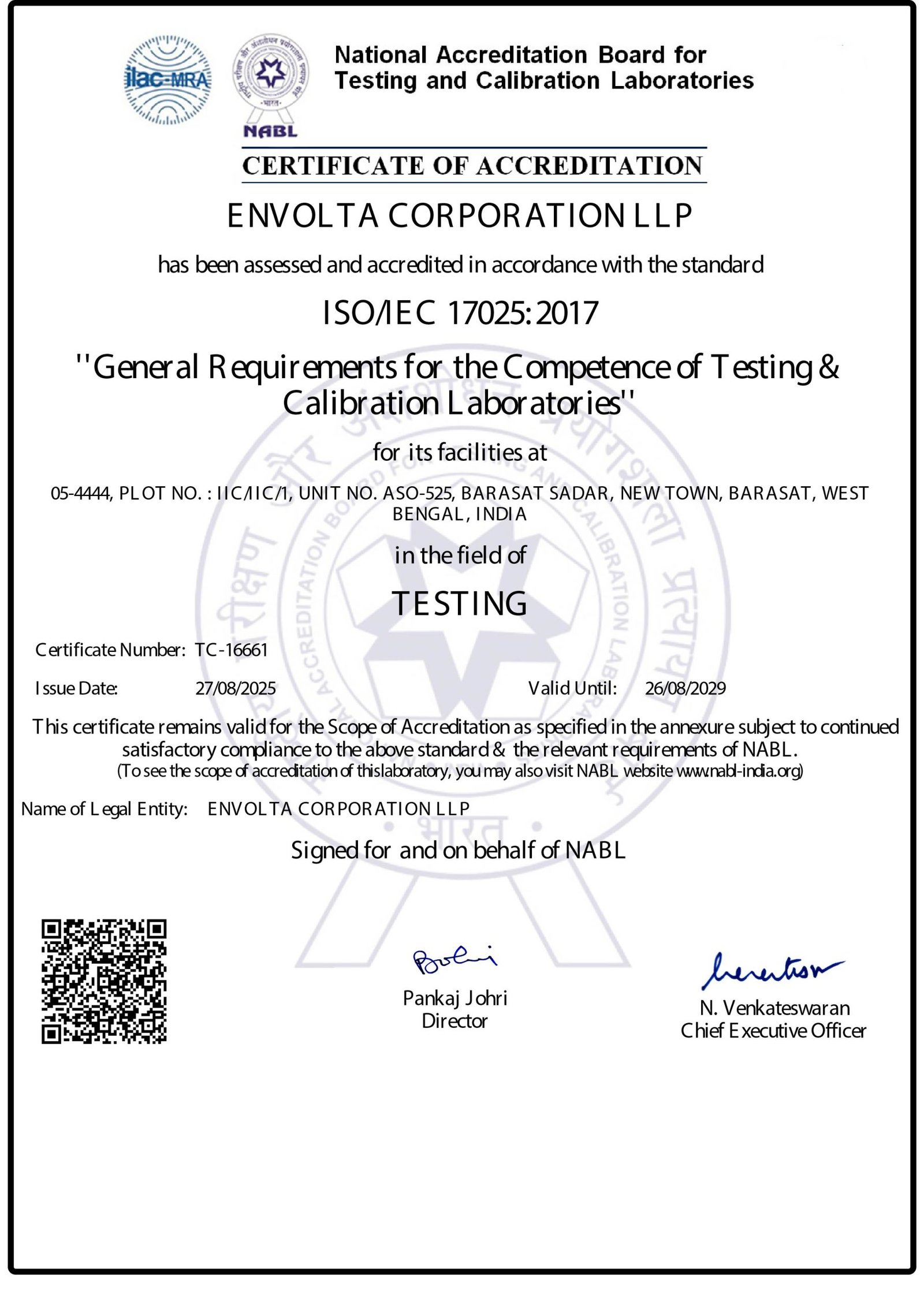 Envolta, with a strong commitment to Quality and Safety, is certified by AERB and fully compliant with their rigorous testing standards. Our Quality Assurance services for diagnostic radiological equipment is ISO/IEC 17025:2017 certified, that has been accredited by NABL.